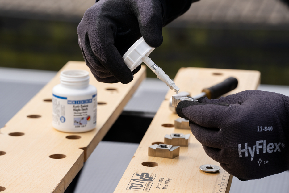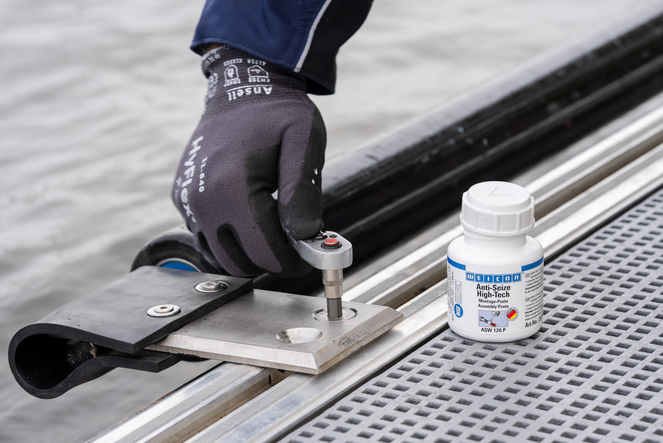 The assembly paste WEICON Anti Seize High-Tech is high-temperature-resistant, has excellent separating characteristics, is metal-free, neutral to materials and has an NSF registration. It is particularly suitable when metal-containing pastes can cause electrolytic reactions, when nickel-containing products should or may not be used due to health reasons and when dark metal-containing products should or may not be used for visual reasons.