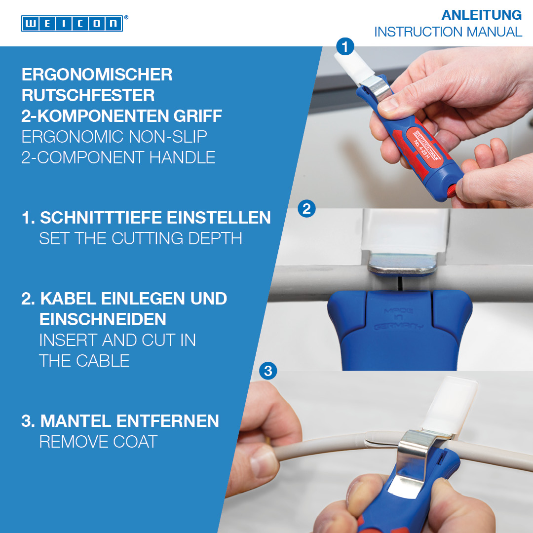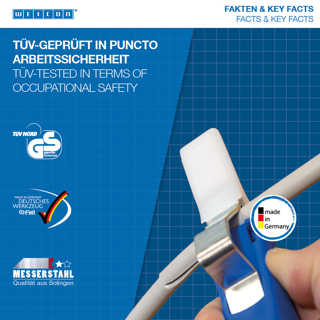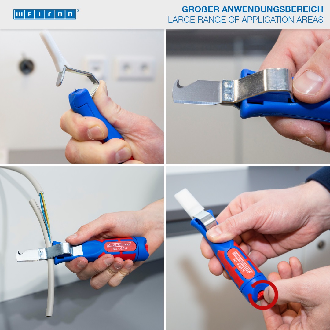 Large handle diameter for optimum haptic Infinitely variable and easy to operate adjusting screw Precise, quick and safe stripping Quick change of the inner blade with a bayonet fitting