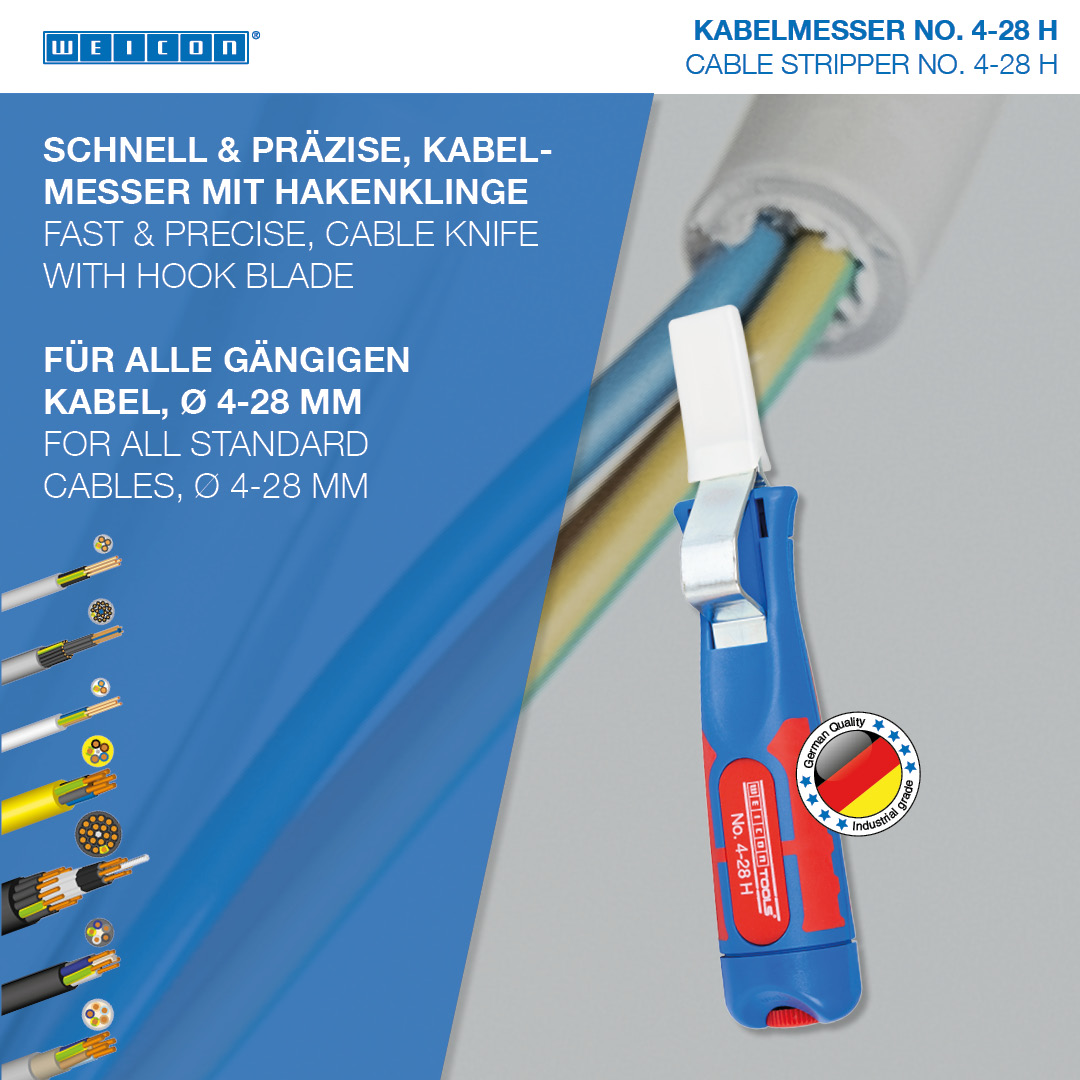 with 2C handle including hook blade and protective cap, working range 4 - 28 mm Ø