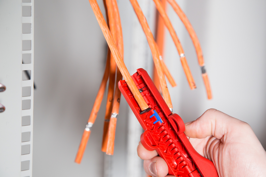 suitable for e.g. Cat5, Cat6, Cat7, twisted-pair cables (4.5 - 10 mm Ø) integrated length stop, adjustable to the required dimensions of network sockets and plugs (3-10 cm) non-slipping and safe working thanks to ergonomic handle shape