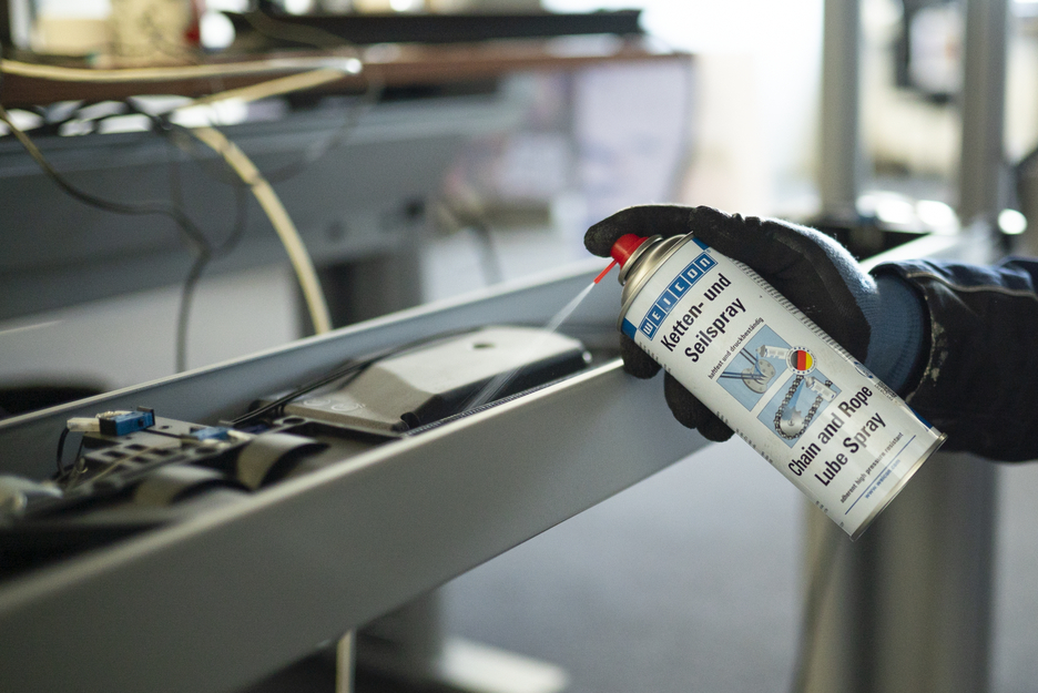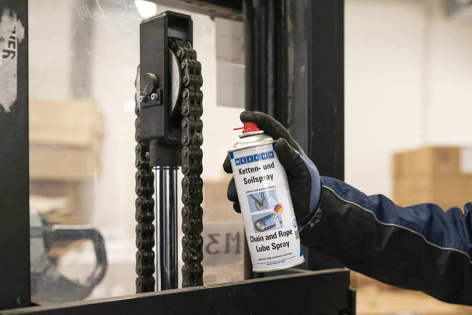 WEICON Chain and Rope Lube Spray is a synthetic, transparent adhesive lubricant for the permanent internal and external lubrication of all types of highly stressed chains and wire ropes. Chain and Rope Lube Spray is particularly strongly adherent, has excellent creeping properties, suppresses noise, repels water and prevents elongation, friction and wear. The spray can be used on all types of chains and wire ropes, gearwheels, worm gears, fast-running machine parts, joints, couplings, rollers, ball bearings and spring assemblies in many industrial applications.
