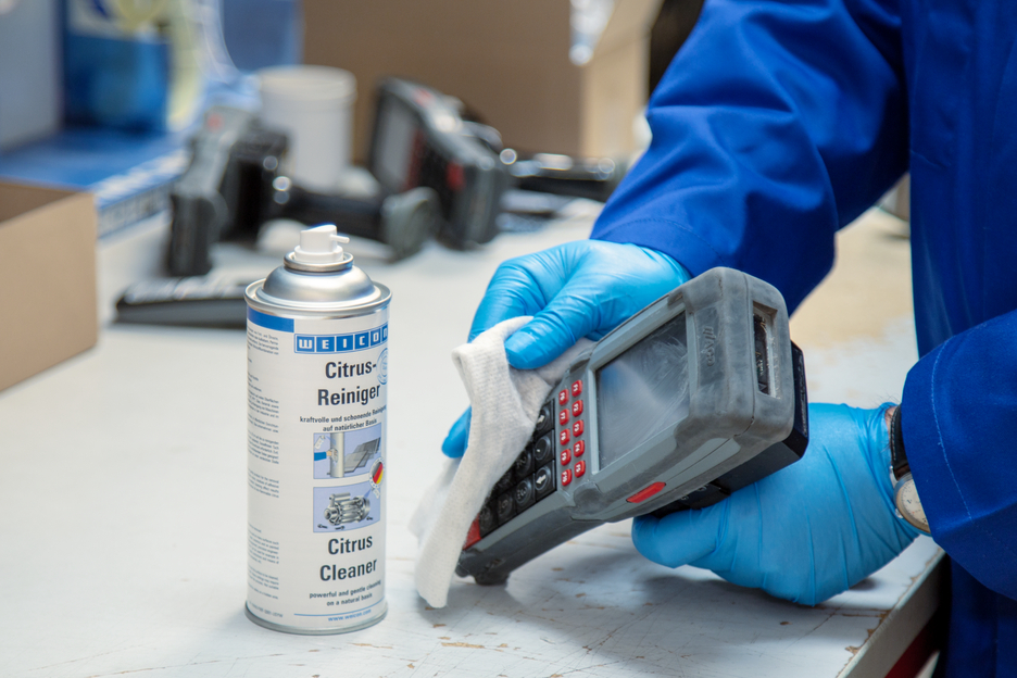 WEICON Citrus Cleaner is an all-purpose cleaner based on alcohol and citrus peel extracts. Thanks to its high isopropanol content of over 75%, WEICON Citrus Cleaner makes use of its disinfectant effect and thus supports the overall cleaning and disinfection of surfaces. It is suitable for all-purpose use and can be used in industry and skilled trades, in window construction, in public facilities and public transport, in construction companies, and around the house. It cleans a wide variety of materials, such as metals and plastics, glass, ceramic as well as painted and coated surfaces*. WEICON Citrus Cleaner also achieves a high level of effectiveness and reaches high efficiency in basic hygiene and the support of additional hygiene measures, the cleaning of frequently used hand tools, soiling caused by pencils, ballpoint pens and felt-tip pens. *For safety reasons, the material compatibility should first be checked on a non-visible area.