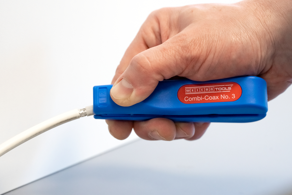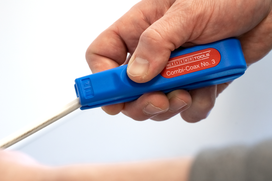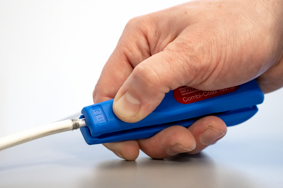 Working range 4.8 - 7.5 mm Ø Also suitable for flexible cables Integrated and well accessible side cutter up to 8 mm Ø Allows two- or three-level stripping of all common coaxial cables
