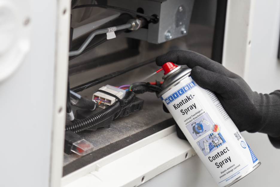 WEICON Contact Spray is based on a special combination of active ingredients for the protection and care of electrical contacts and components. It dispels moisture from electrical contacts, prevents leakage currents and voltage loss and keeps contacts, fuses, cable connections, etc. free of oxidation and sulphide layers. Therefore, WEICON Contact Spray can be used e.g. for fuse boxes, intercoms, garage door motors, sockets, cables and connectors, cable drums and extensions, electric garden tools and lighting systems.