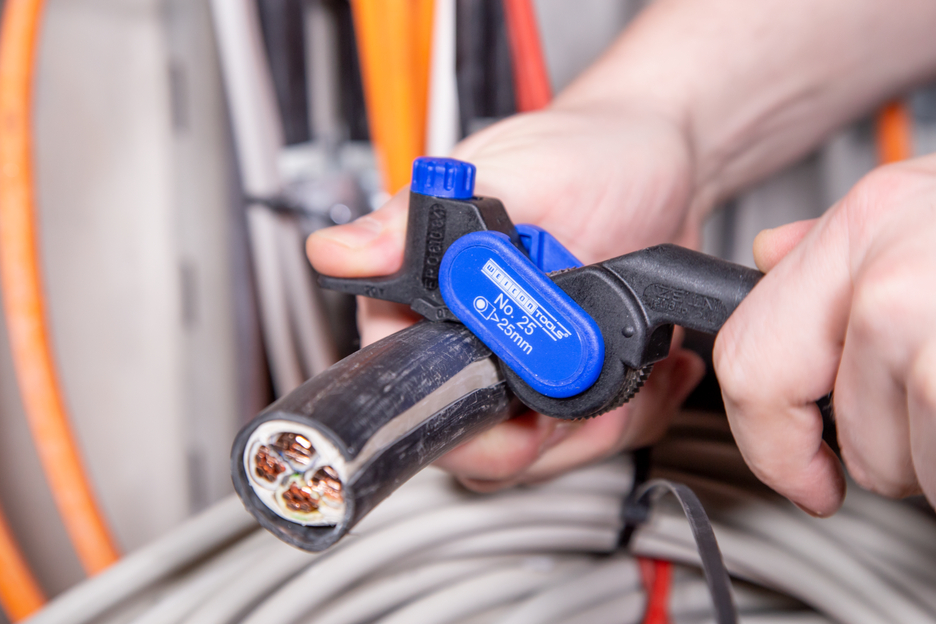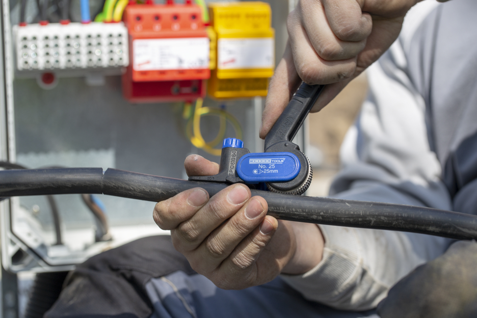 cable knife for longitudinal and circular cuts on round cables from 25 mm Ø