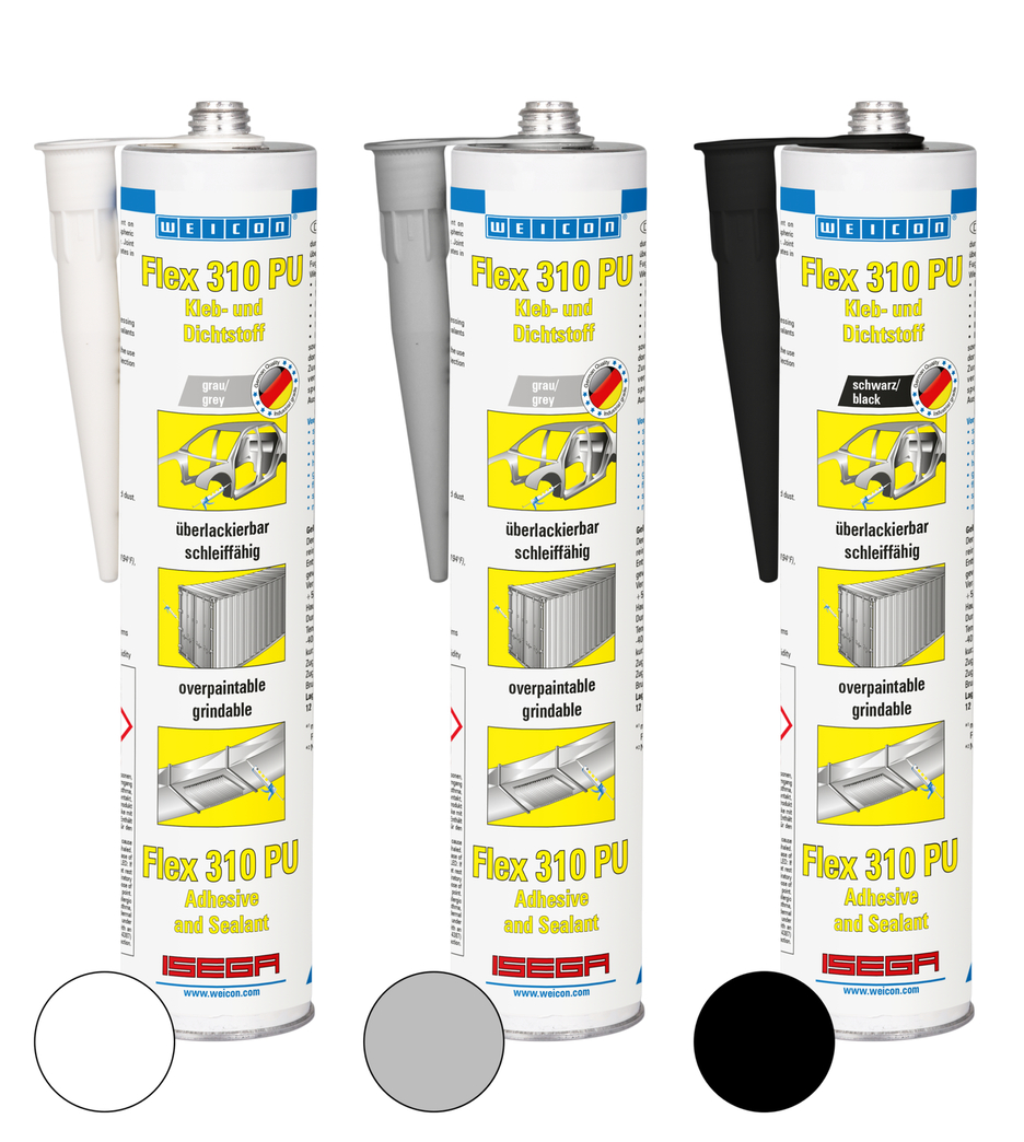 WEICON Flex 310 PU is permanently elastic, strong, paintable, and resistant to weather, ageing, fresh and sea water and free of silicone. This versatile adhesive and sealant based on Polyurethane (PUR) can be used for the bonding and sealing of numerous materials such as metals, plastics, ceramics, wood, glass and stone. It can be used in tank and apparatus engineering, carriage, container and vehicle construction, in ventilation and air conditioning systems, the energy and electrical industry, and in all applications where silicones or products containing silicones are not suitable.