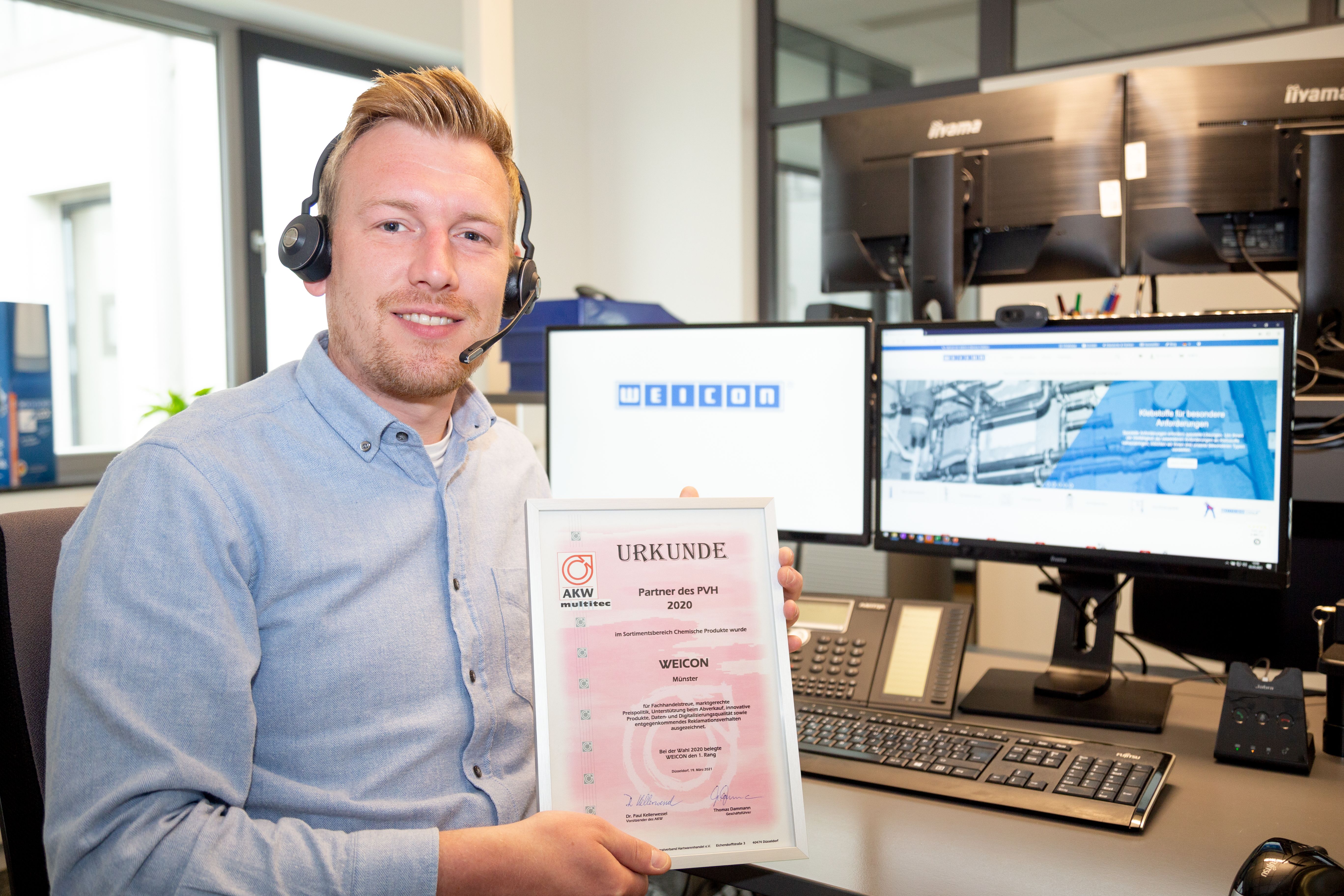 Weicon, the Muenster-based manufacturer of adhesives and sealants, has been named one of the best partners of the specialist technical trade by the PVH. In the category "Chemical Products", the family-owned company took 1st place. The PVH is the Federal Association of the Production Connection Trade, to which many technical dealers belong who also work closely with the Muenster-based company. The PVH awards the prize in cooperation with the Tools Working Group (AKW) of the Central Association of the Hardware Trade.