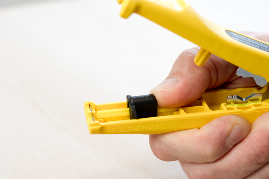 With the Mini-Solar 10/16 mm² Stripper, all common solar cables can be stripped fast and easily. Adjusting the cutting depth manually is not necessary. The integrated length stop (from 6-28 mm) is suitable for the stripping of solar cables of 10 or 16 mm². In addition, the glass-fibre reinforced tool has an easily accessible side cutter for cables up to 10 mm². When using the stripper, a precise cutting pattern is created during stripping. In addition, the Mini-Solar 10/16 mm² can be locked for space-saving storage.