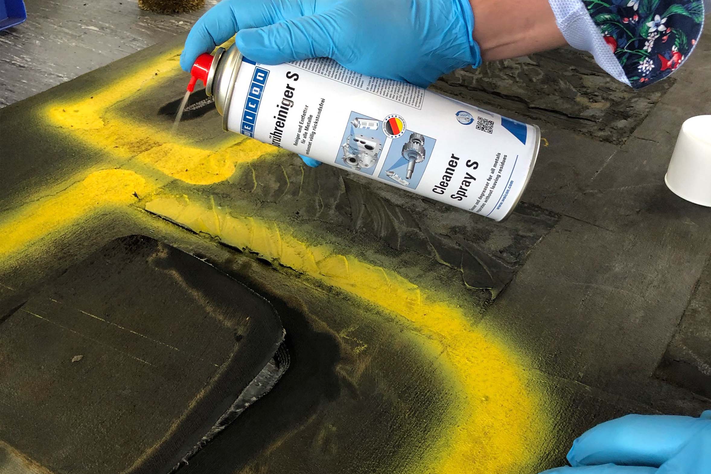 In order to repair the blades sustainably, they are first thoroughly cleaned with WEICON Cleaner S, sandblasted and cleaned again. WEICON HB 300 then levels out damaged areas and reinforces the component.