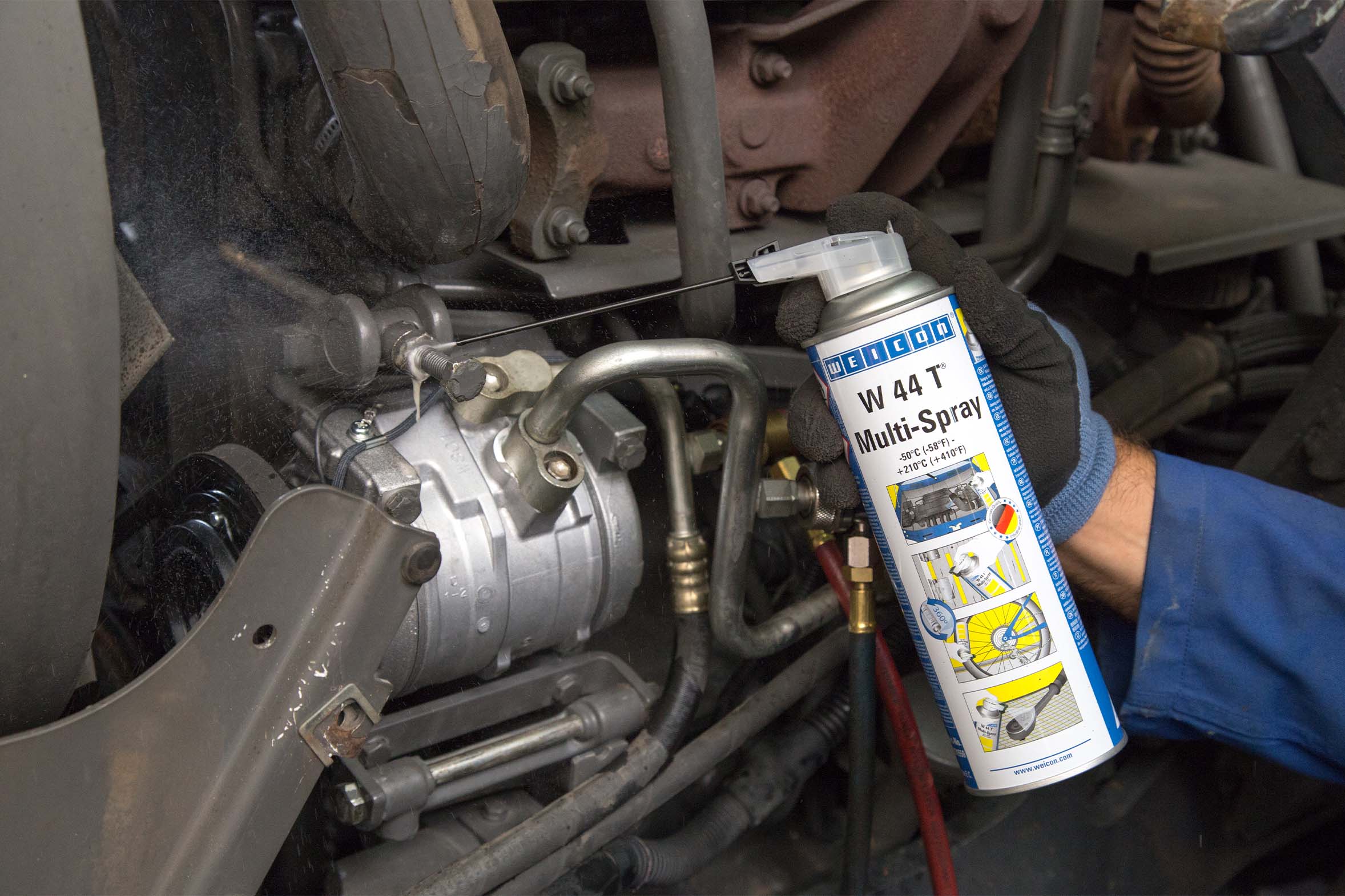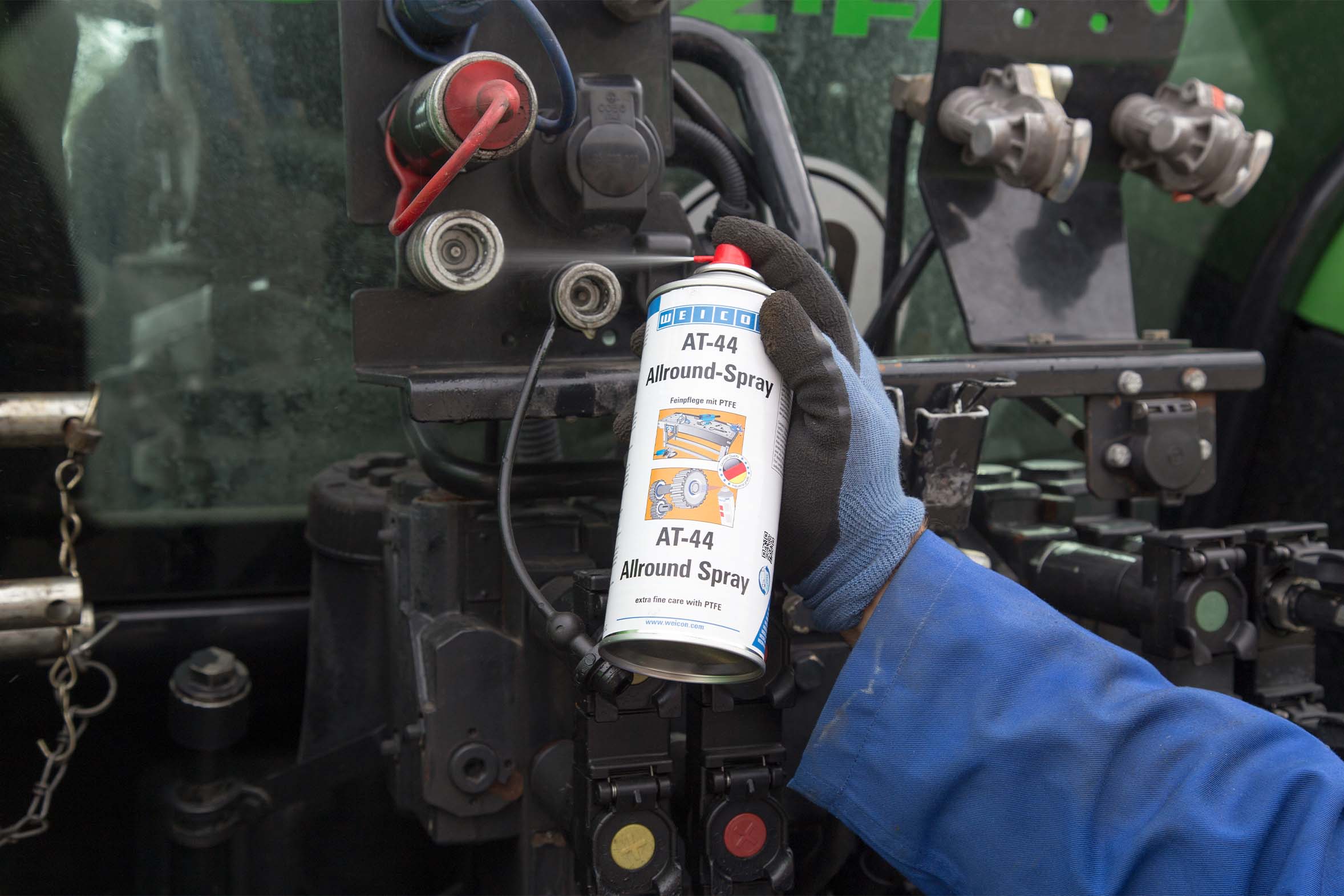 WEICON W 44 T Multi-Spray is ideal for the maintenance and lubrication of trailer couplings, hydraulic joints and moving parts on tractors, mowers or balers. It prevents screws on ploughs or harrows from seizing and protects chain drives from rust. WEICON AT 44 Allround Spray with PTFE ensures long-lasting lubrication of hinges on gate doors, Bowden cables on feeding systems or bearings in conveyor systems and reduces wear thanks to its dry, dirt-repellent lubricating film. The targeted use of WEICON W 44 T and AT 44 allows for the efficient maintenance of machines and devices, reducing downtimes and lowering repair costs.