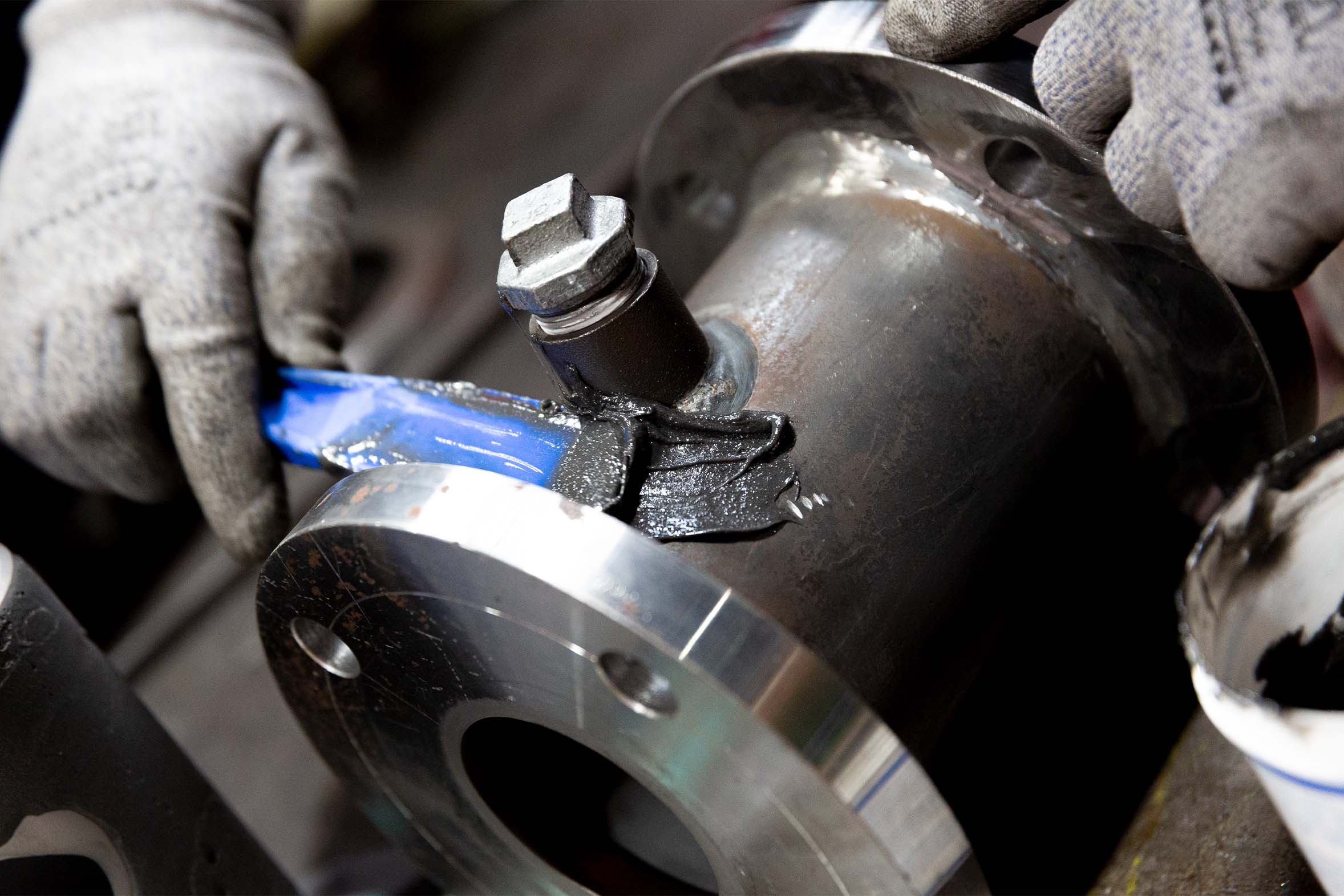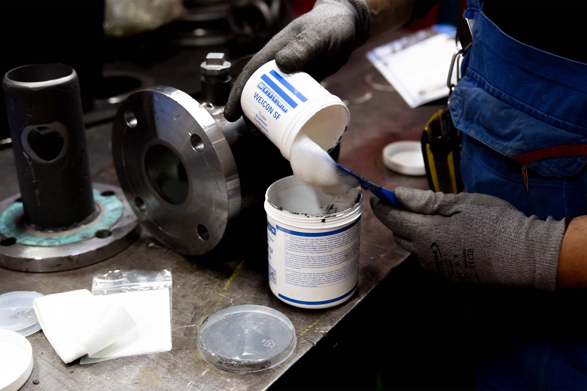 Several layers of different WEICON ceramic coatings are used for long-term protection against wear. A first coat of WEICON Ceramic HC 220 serves as a durable primer, followed by an additional coating of WEICON Ceramic BL, which provides high abrasion resistance. Finally, an additional coat of WEICON Ceramic HC 220 further hardens the component and provides optimal protection against mechanical wear and corrosion.