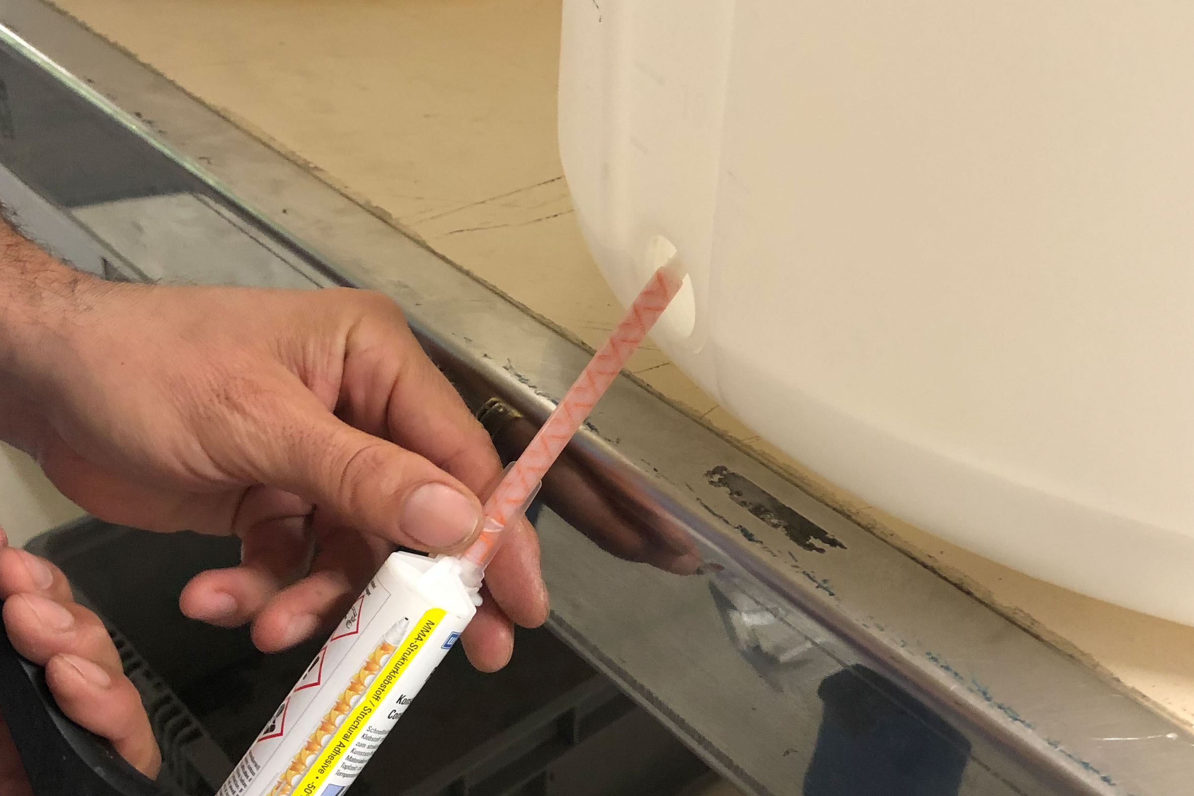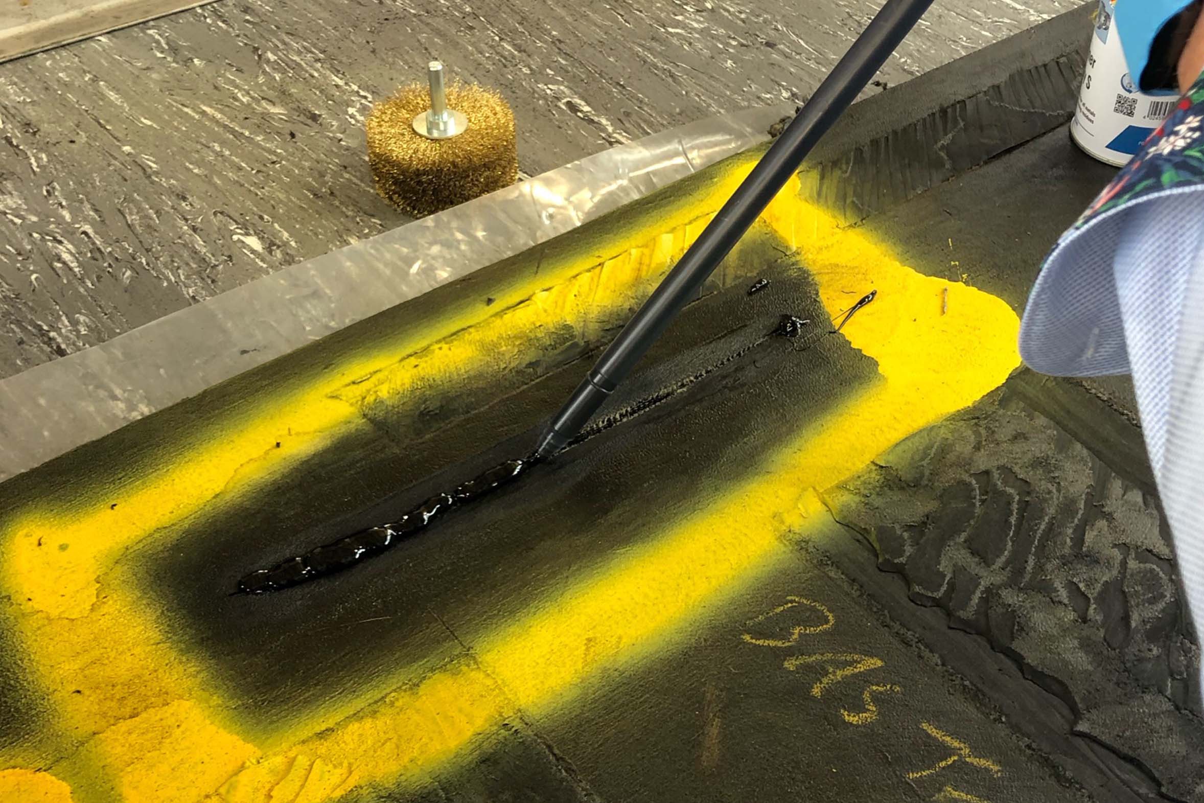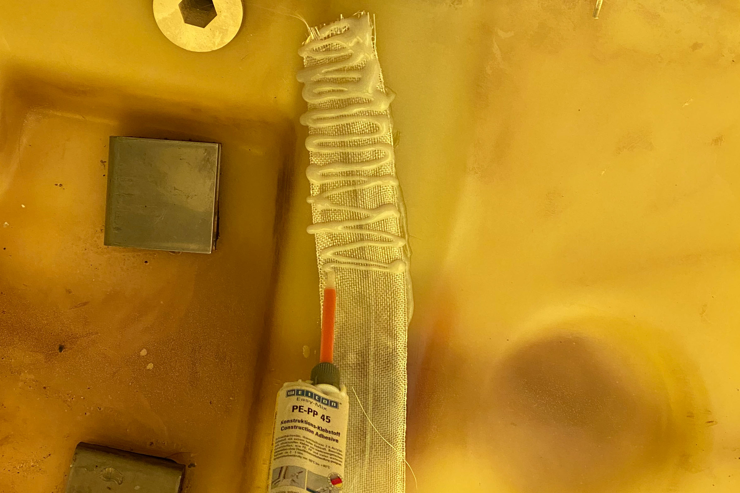 The repair with WEICON Easy-Mix PE-PP 45 not only saves costs but also prevents potential environmental damage from leaking liquids. Thanks to the adhesive's high resistance to weathering and chemicals, the repair is permanent and reliable.