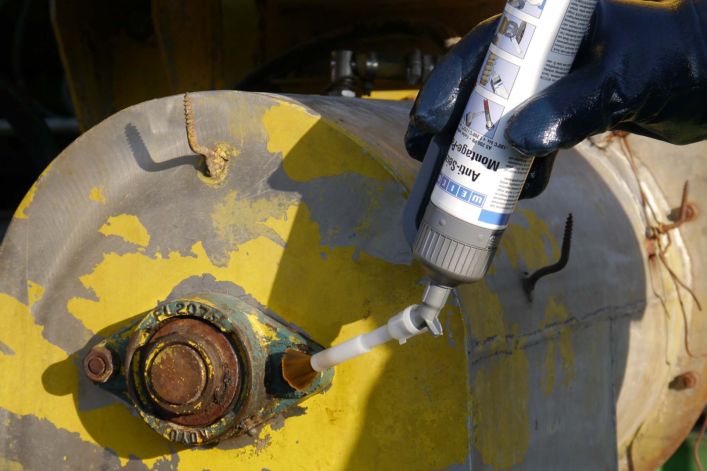 WEICON Anti-Seize facilitates the disassembly of screw connections on trailers and machinery, while providing protection for bolts, hinges and PTO shaft couplings. In milking parlours and feed mixing systems, it prevents stainless steel connections from seizing.