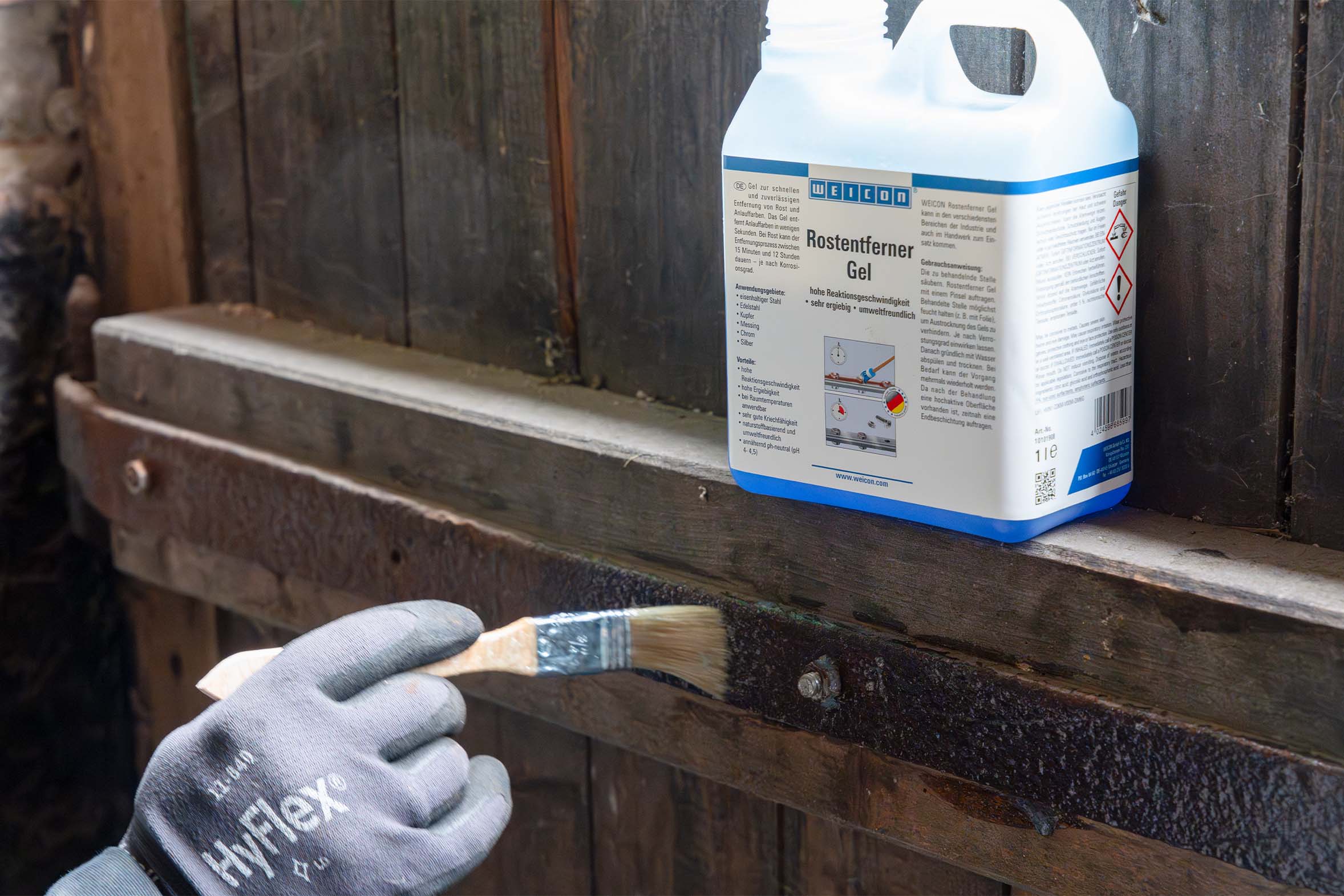 WEICON Rust Remover (liquid & gel) reliably removes rust from ploughs, trailers and stable equipment. Rust converter neutralises existing rust and serves as an ideal primer for subsequent coatings.