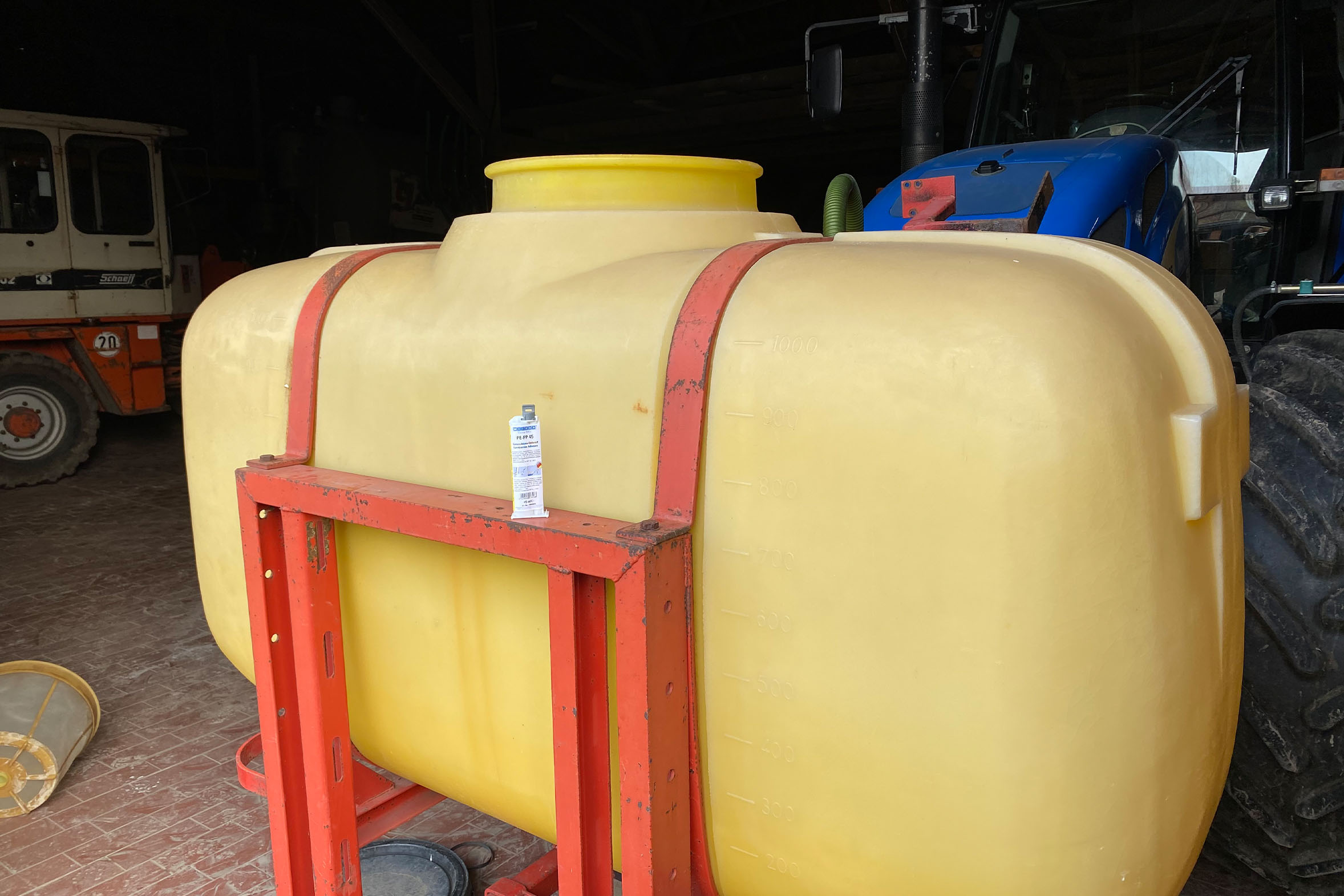 Defective or damaged polyethylene tanks are a major problem in agriculture, as they are essential for the storage of water, fertilisers or chemicals. With WEICON Easy-Mix PE-PP 45, quick and cost-effective repairs can be carried out without the need for a new purchase. After thorough cleaning with WEICON Surface Cleaner, the adhesive is applied, followed by a bandage or glass fibre tape. Subsequently, these are sealed with another layer of WEICON Easy-Mix PE-PP 45. Optimal adhesion is achieved by manually distributing the adhesive. After 24 hours of curing at room temperature, the tank is ready for use again.