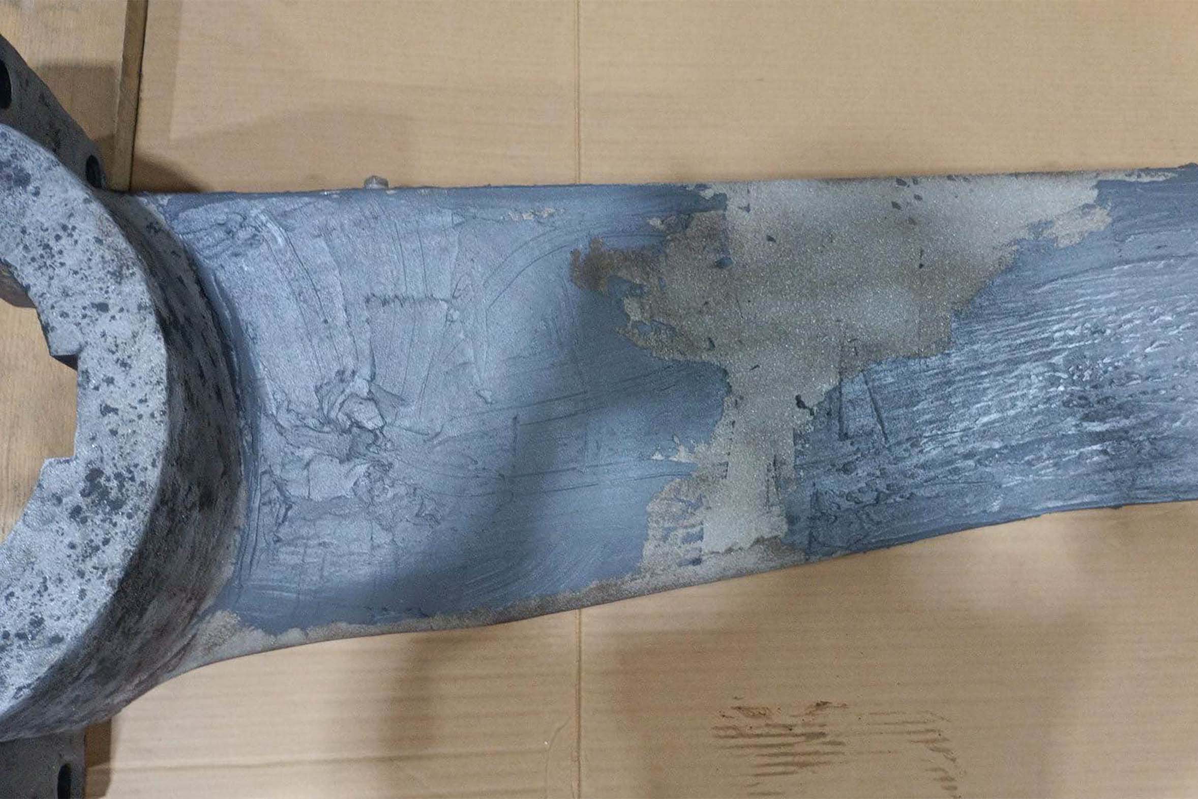 To carry out repairs, the damaged blade sections are initially stabilised with WEICON Repair Stick Multi. This universal repair putty adheres reliably to metal, is easy to use and hardens quickly. Subsequently, the structure is rebuilt in layers using WEICON Casting Resin MS 1000 – a high-strength epoxy resin system specifically designed for bonding, laminating and casting applications. The final coating with WEICON Ceramic HC 220 ensures maximum wear protection. Thanks to its ceramic filling and high temperature resistance, it protects the propeller from abrasion and chemical influences permanently.