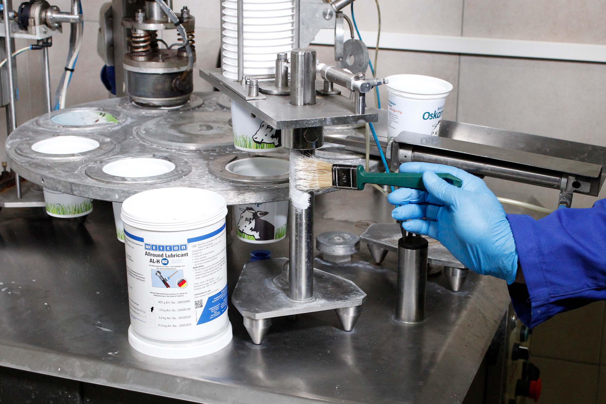 WEICON AL-H is specially approved for use in the food industry and is ideal for lubrication applications in animal feed production or milking systems. It protects bearings, guides and chain drives from wear and ensures safe operation without the risk of contamination.