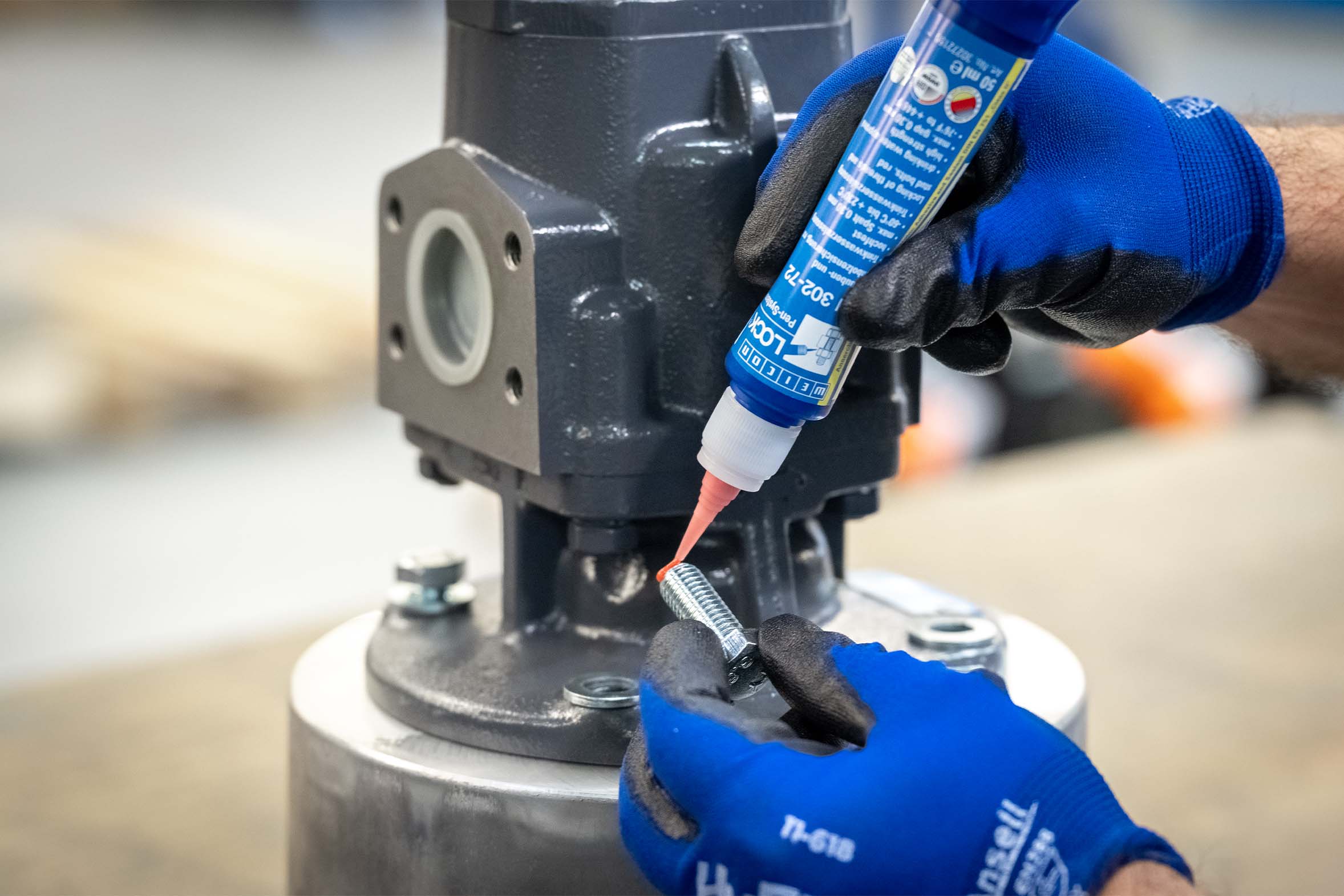 In addition, WEICONLOCK AN 302-43 is used for threadlocking. The medium-strength threadlocker prevents unintentional loosening of screws caused by vibrations and mechanical loads, ensuring long-term stability.