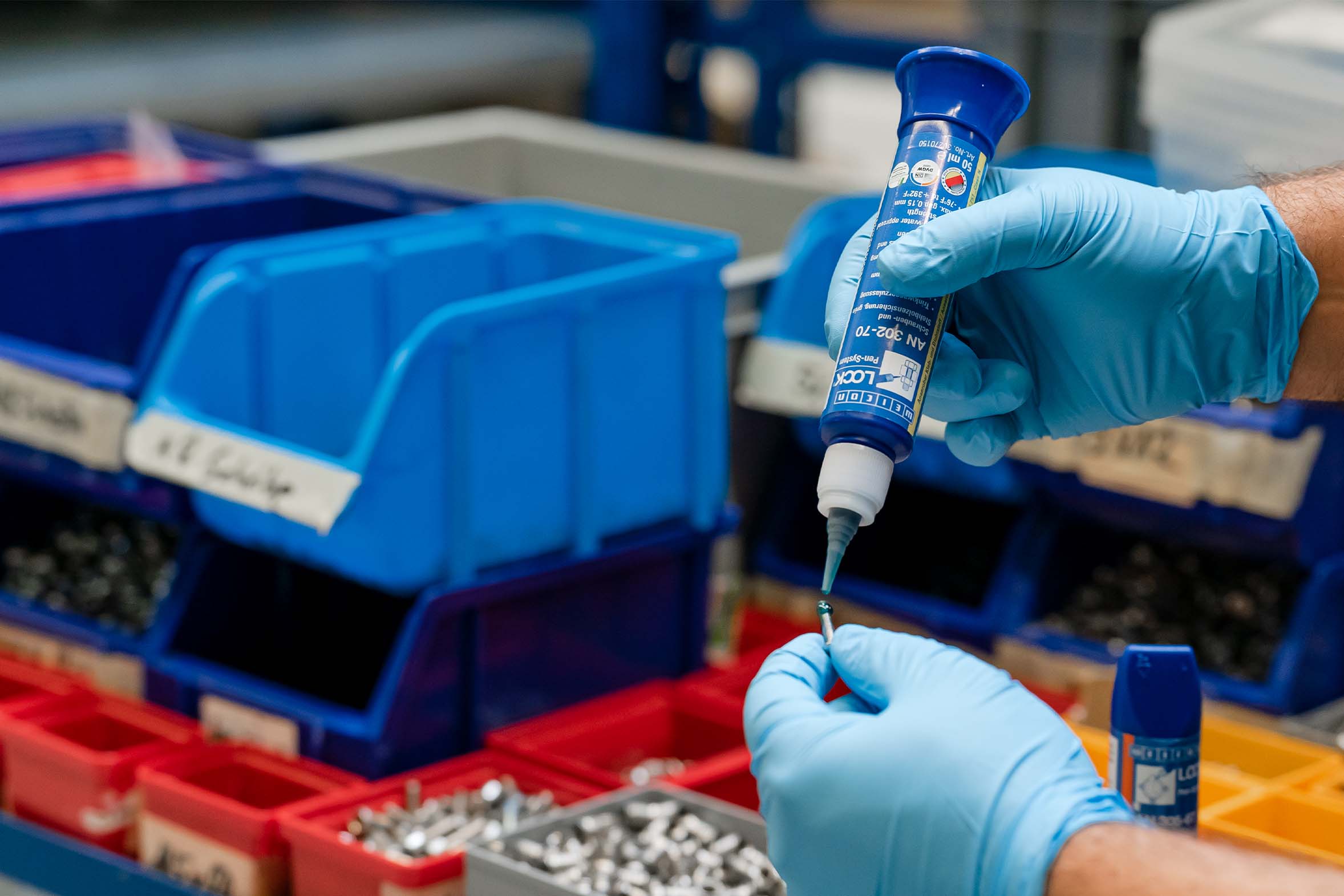 In the construction of machines and systems, screws and bolts can be reliably secured with WEICONLOCK® AN 302-70. The threadlocker effectively prevents screw connections from coming loose easily and unintentionally. Disassembly requires a considerable amount of force, which additionally increases the safety and stability of connections in mechanical engineering. The securing system also serves as an alternative to conventional fastening methods such as spring washers and other mechanical fastening techniques.