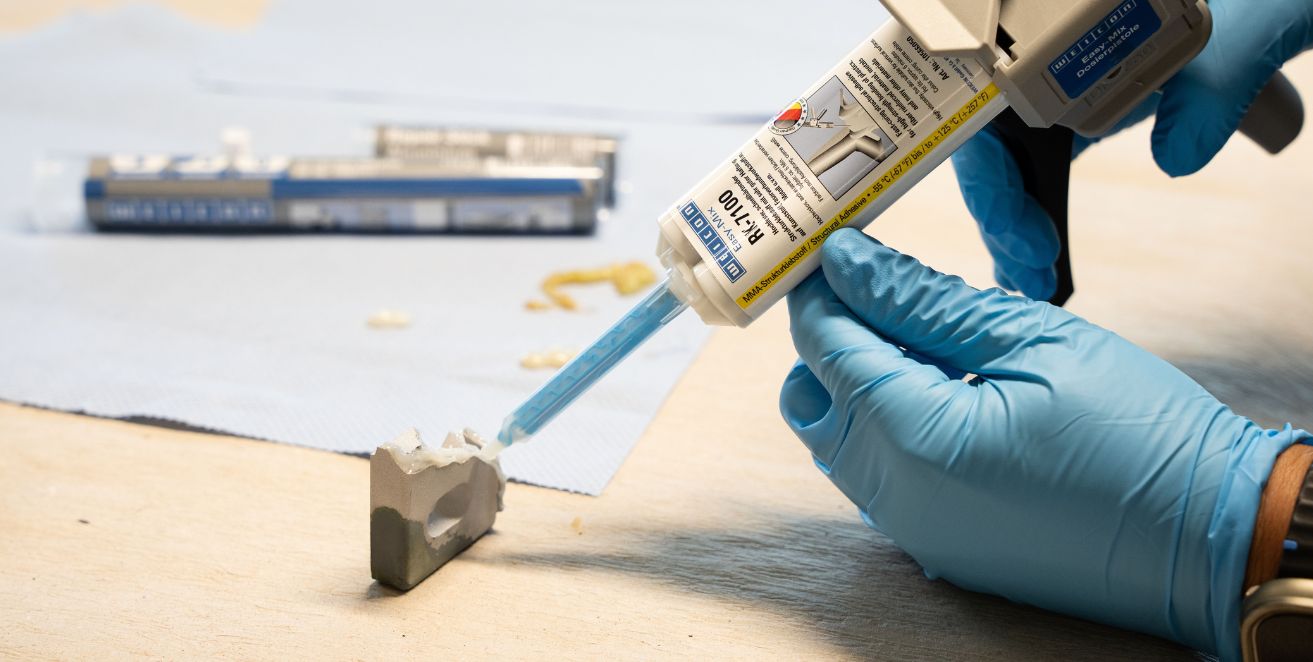 Structural acrylic adhesives are based on MMA (methyl methacrylate) and show high adhesive strength on fibre composites, many plastics, metals, and many other materials. Thanks to their high viscosity, these adhesives can also be applied on vertical surfaces.