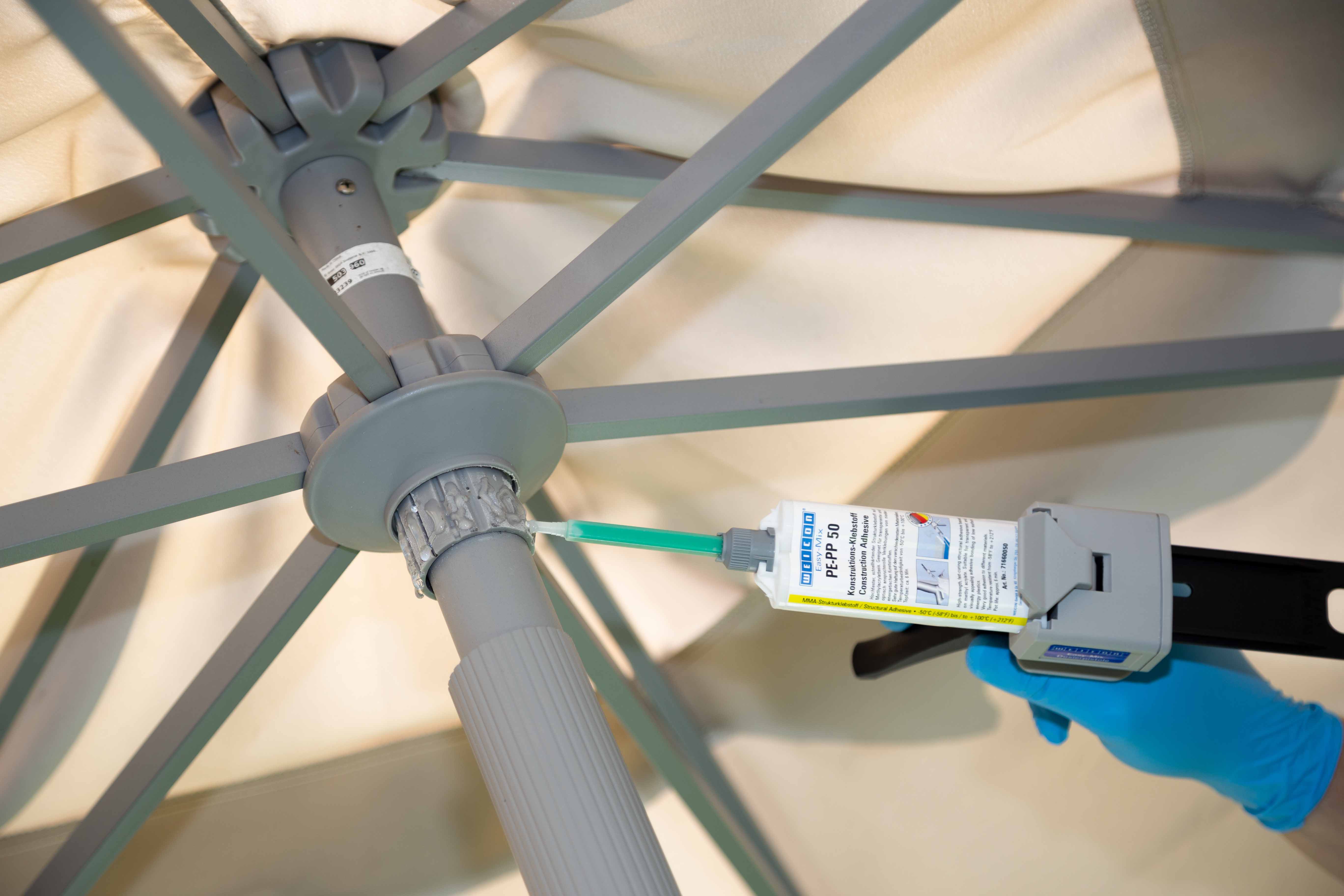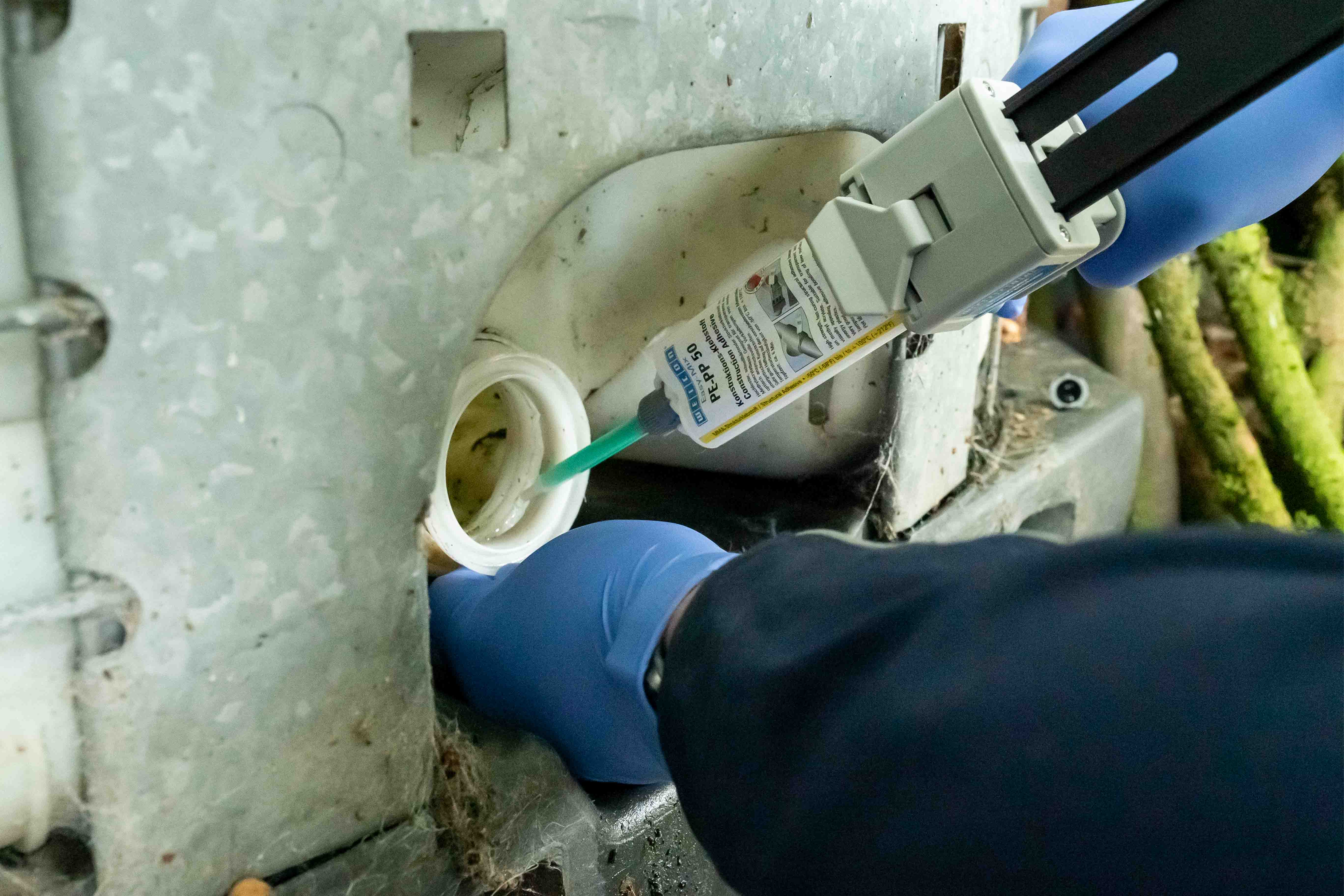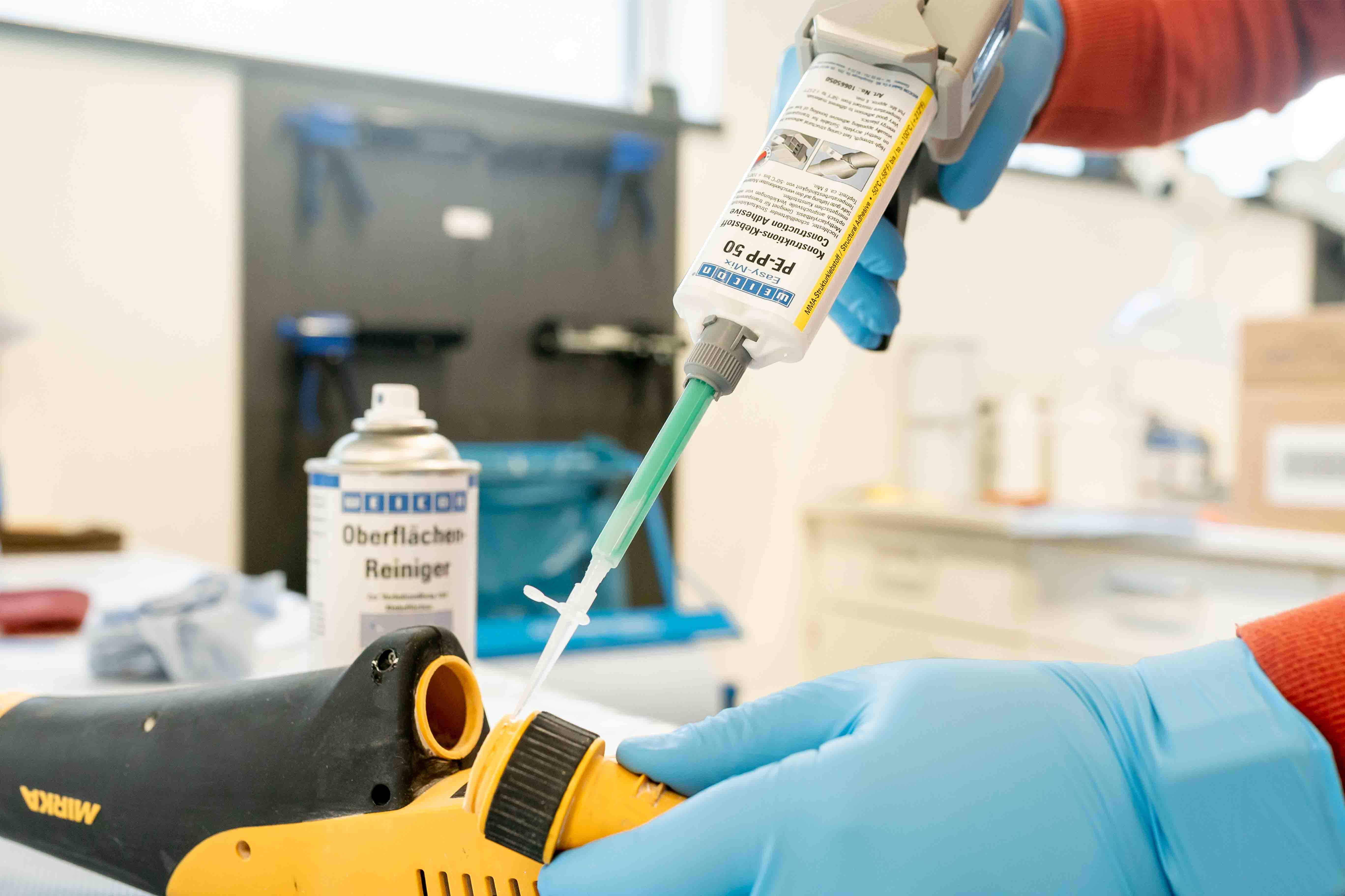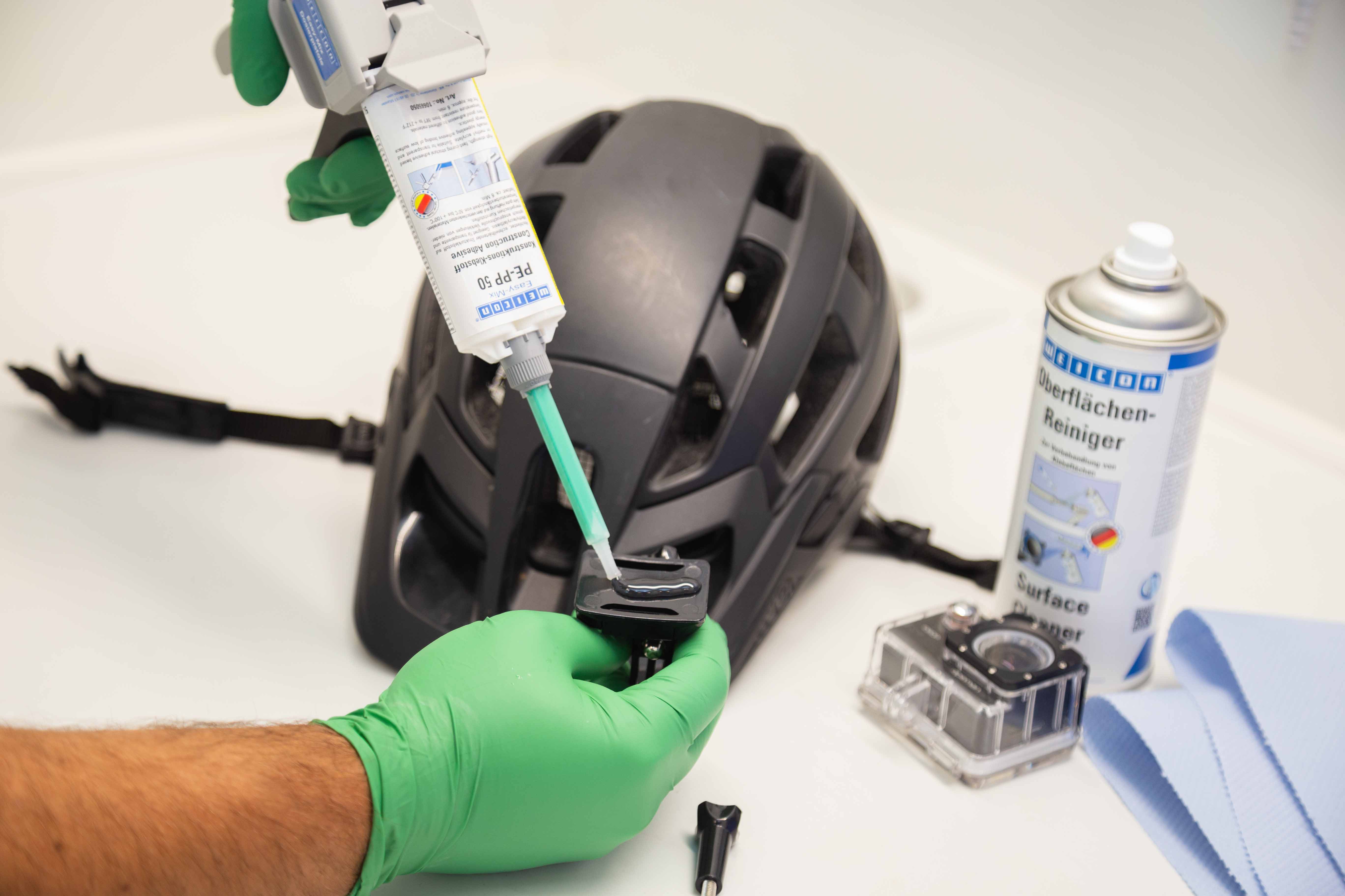 ✓ Select the right adhesive, e.g. WEICON Easy-Mix PE-PP 50 based on methyl acrylate, WEICON Plastic-Bond or one of our instant adhesives