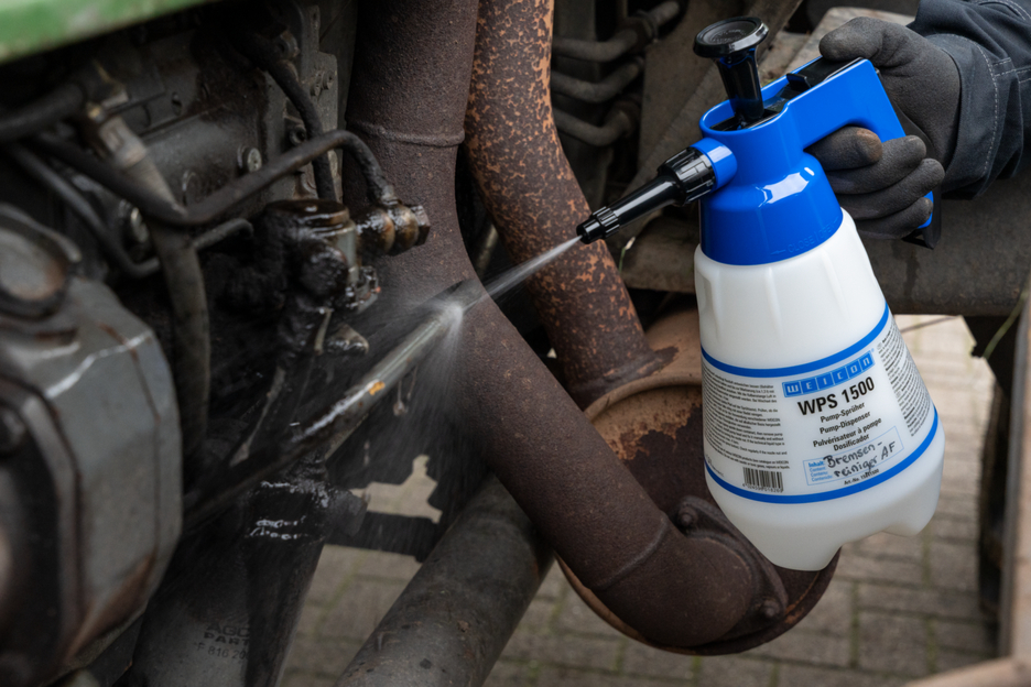 WPS 1500; refillable pump dispenser. The building-up pressure in the fluid container is achieved by pumping pure air with the pump rod. An integrated security valve opens automatically as soon as the allowed pressure (max. 4 bar) has been exceeded. Pushing the spray lever provides an even and constant fluid emission. By turning the spray adjustment dial, the spray rate and spray pattern can be adjusted from a strong jet to a light spray mist.