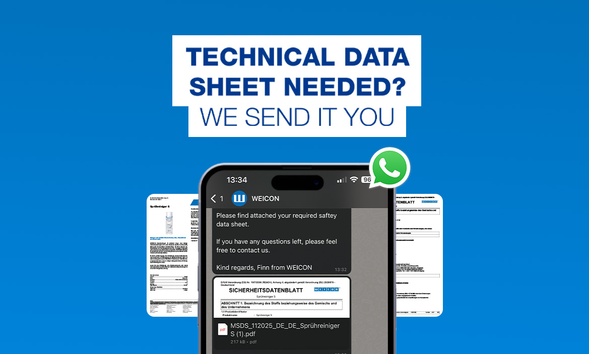 Would you like to contact us anytime and anywhere, send us photos of your application or use the WEICON TOOLS Finder? Do you have questions about our products, are you looking for the right contact person or would you like to order via WhatsApp quickly and easily? We have made all this possible for you! Use our WhatsApp service or subscribe to our WhatsApp newsletter or our new WhatsApp channel.