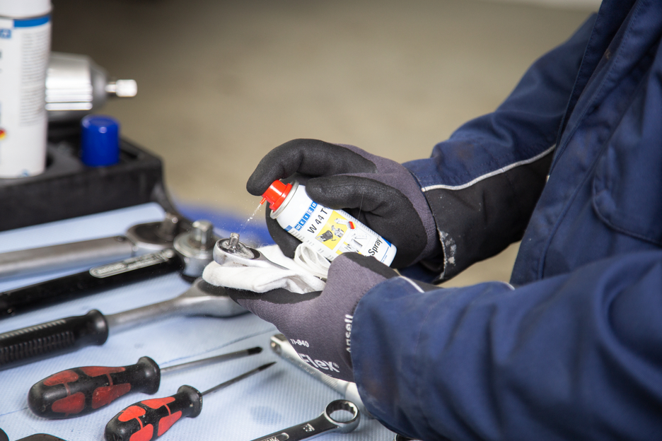 WEICON W 44 T® is a multifunctional product which combines corrosion protection, water repellency, lubrication, conservation and cleaning in a single product due to its special formula and outstanding capillary action. It loosens seized up screw connections, bolts, fittings and valves, and penetrates and dissolves rust. It repels humidity from electrical contacts, prevents leakage currents, and makes it easier to start wet motors. W 44 T® is also suitable for use as cutting oil for drilling and cutting processes. The oil eliminates squeaky and creaky noises on hinges, guides, bearings, and all types of joints and couplings. WEICON W 44 T® cleans soiled metal surfaces and leaves a long-lasting razorthin film, which does not smear or stick and does not attract dust. It protects and maintains all types of tools, machines, and electrical and mechanical precision devices.