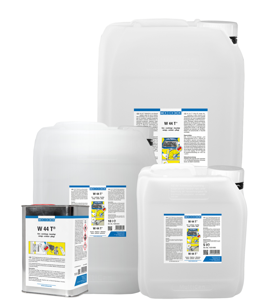 WEICON W 44 T® is a multifunctional product which combines corrosion protection, water repellency, lubrication, conservation and cleaning in a single product due to its special formula and outstanding capillary action. It loosens seized up screw connections, bolts, fittings and valves, and penetrates and dissolves rust. It repels humidity from electrical contacts, prevents leakage currents, and makes it easier to start wet motors. W 44 T® is also suitable for use as cutting oil for drilling and cutting processes. The oil eliminates squeaky and creaky noises on hinges, guides, bearings, and all types of joints and couplings. WEICON W 44 T® cleans soiled metal surfaces and leaves a long-lasting razorthin film, which does not smear or stick and does not attract dust. It protects and maintains all types of tools, machines, and electrical and mechanical precision devices.