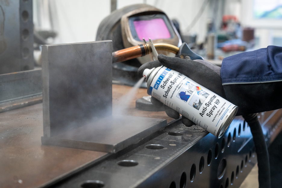 WEICON Anti-Spatter Spray HP is a high-quality release agent and lubricant and is used for cleaning welding tips, welding nozzles and gas nozzles. It also protects workpieces and surfaces to be welded from the adhesion and penetration of weld spatter without impairing the weld seam. The silicone-free Anti-Spatter Spray provides long-term protection for the treated surfaces. Using the spray minimises downtimes and interruptions in the production process for cleaning the welding equipment. The spray is excellent for use on stainless steel, but can also be applied to many other materials, such as aluminium, structural steel or non-ferrous metals. The use of the spray eliminates the need to clean the workpieces with a spatula, brush or chisel. Post-treatment of the workpieces (such as bronzing, galvanising, anodising or painting) is possible without special cleaning. Cleaning, e.g. with WEICON Cleaner Spray S, may be necessary in the case of excessive spraying.