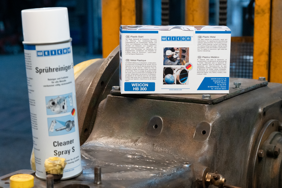 WEICON HB 300 is pasty, steel-filled and high-temperature-resistant up to +200 °C (392 °F) (up to 280 °C/536 °F for a short period of time). It is processed with a mixing ratio of 1:1. The epoxy resin system is also suitable for applications on vertical surfaces and can be used for the repair and bonding of cast and metal parts, for filling in blow holes, for repairing damage on containers, carriages and machine parts and for sealing pumps and pipes. The product can be used in mechanical and plant engineering, in equipment engineering, and in many other areas of industry.